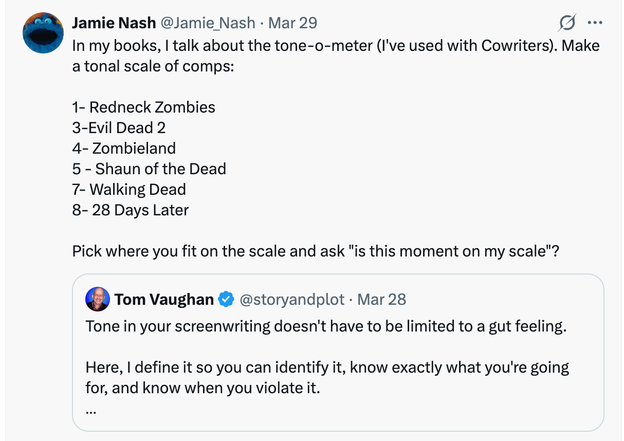 Writer and teacher James Nash posted a very funny (and useful) scale in reply to an X post of mine over the weekend.