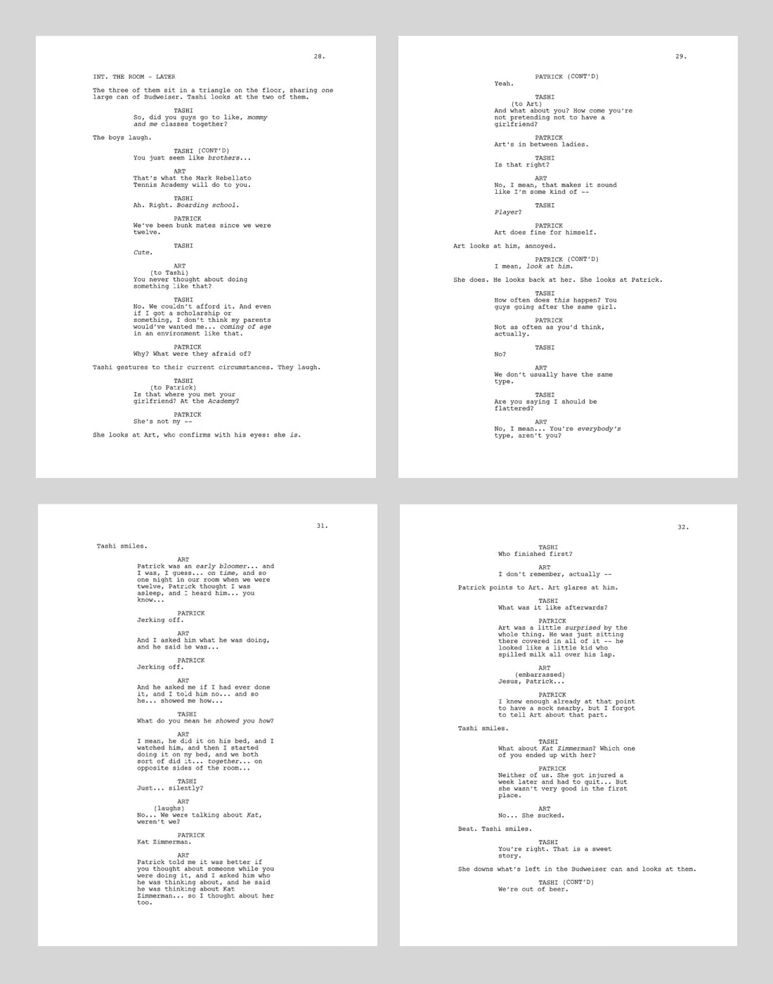 I pulled another random screenplay from my 2024 Awards folder and found CHALLENGERS.