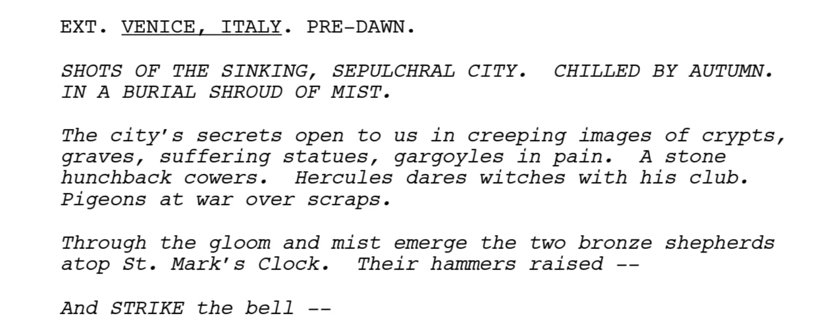 A HAUNTING IN VENICE by Michael Green opens with this.